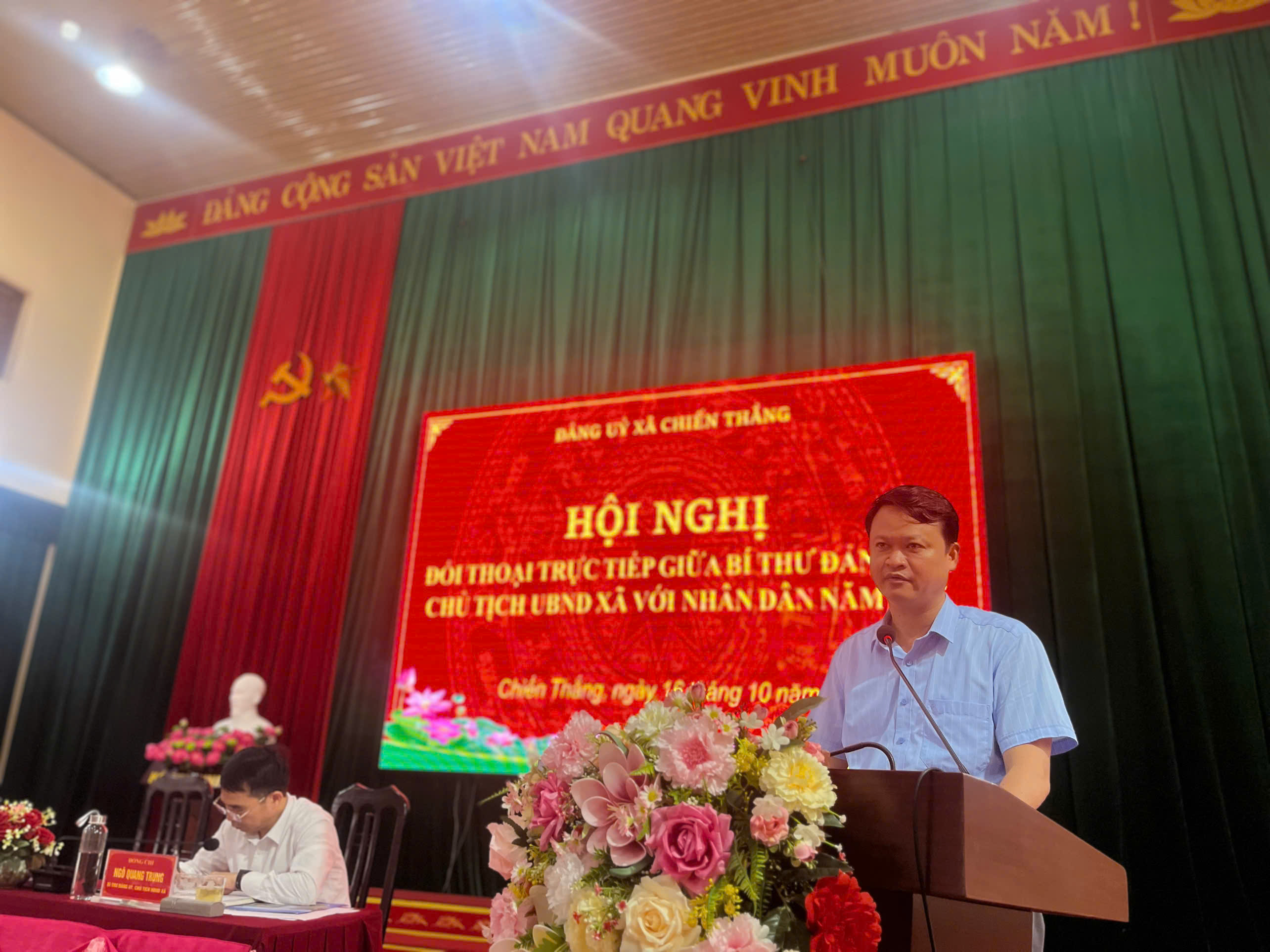 Chiều ngày 16/10/2025, tại Hội trường UBND xã Chiến Thắng, Đảng ủy, UBND xã Chiến Thắng tổ chức Hội nghị đối thoại giữa người đứng đầu cấp ủy, chính quyền với nhân dân năm 2025.